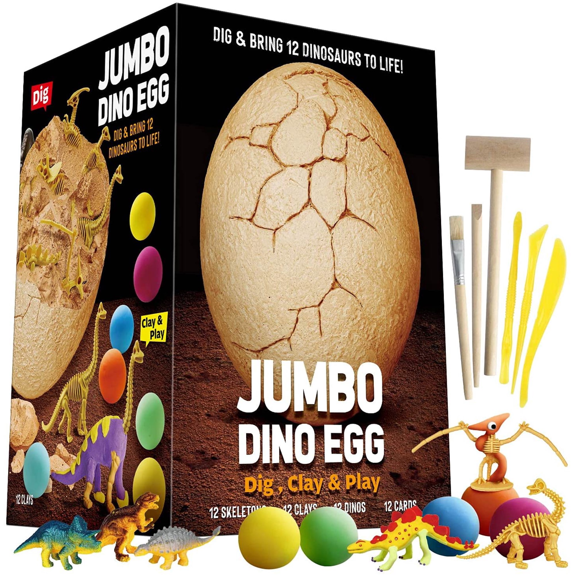 Htcm Jumbo Dino Egg Dig And Clay Kit Dig Up 12 Dinosaur Fossils And Dinosaur Toys U2013 Great Gifts For Boys Girls Science Kit For Kids 4 8 Craft Kits Archaeology Stem