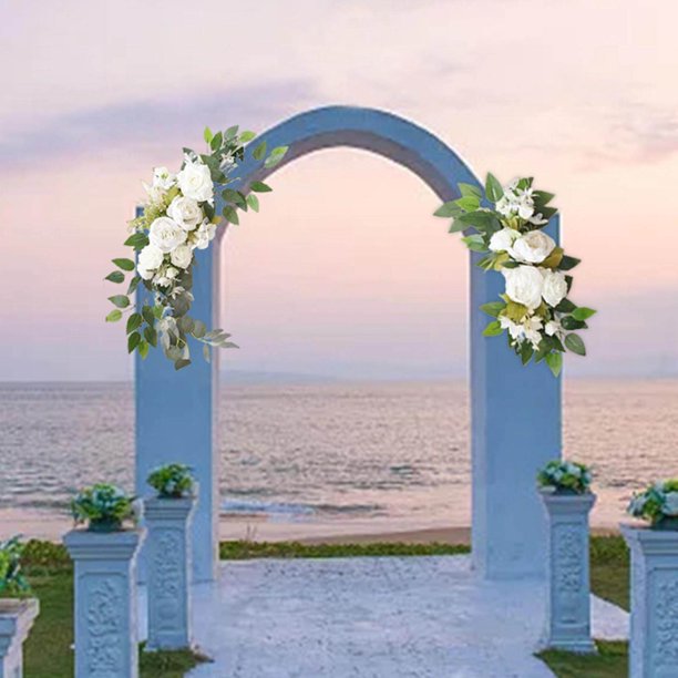2x Wedding Arch Flowers Welcome Sign Ceremony Decor Greenery Leaves White Walmart Ca